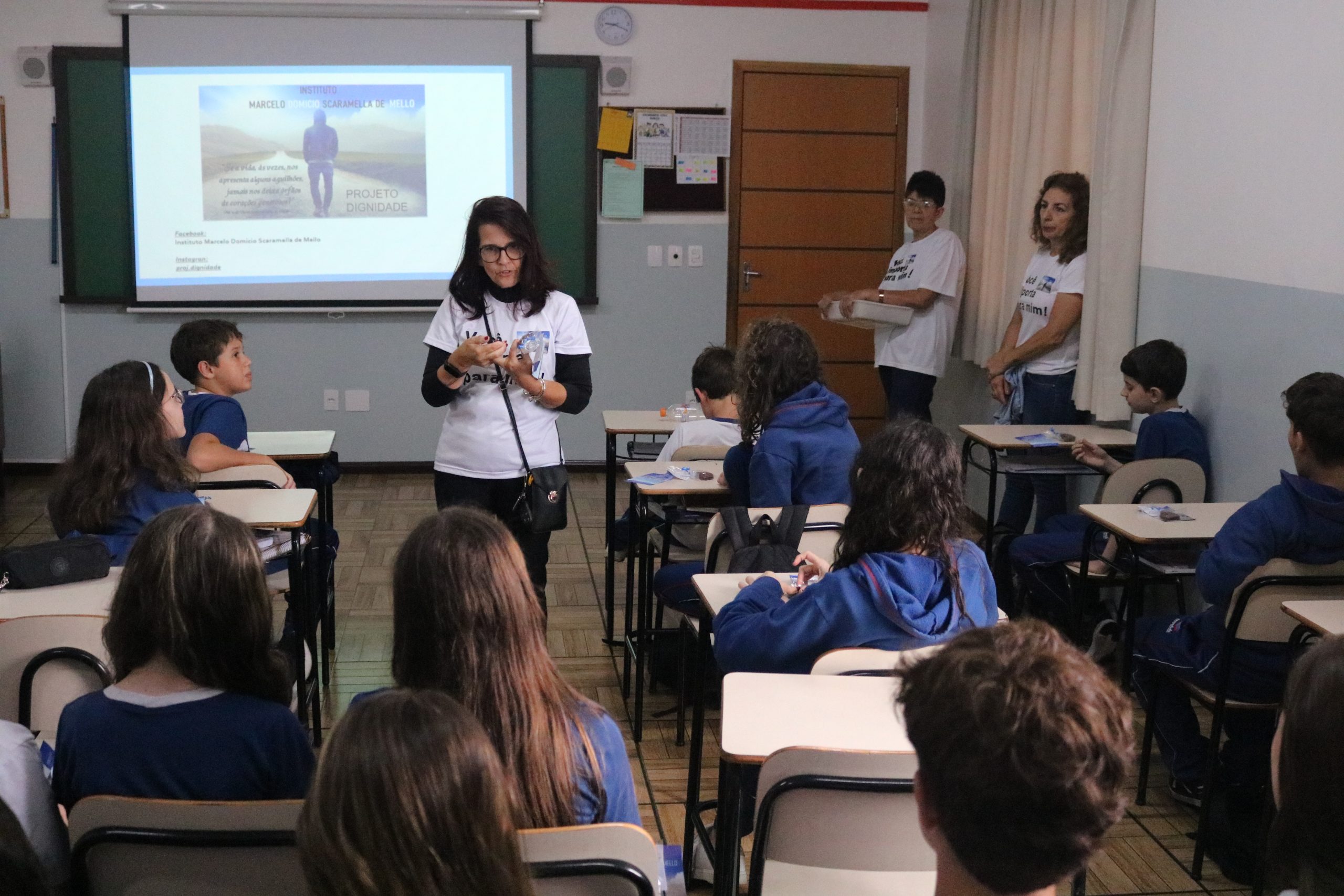 Recebemos as responsáveis pelo Instituto Marcelo Domicio Scaramella de Mello, que compartilharam com nossos estudantes o lindo trabalho de transformar a vida das pessoas com gestos simples e dignos de admiração, como o acolhimento a coletores de reciclagem e suas famílias.